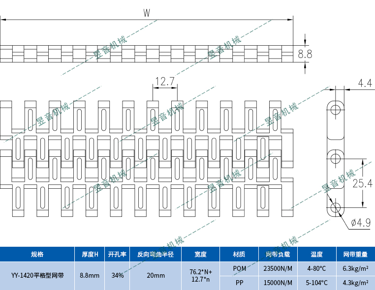 聚甲醛網(wǎng)帶(POM塑料網(wǎng)帶)承受溫度:4~80℃